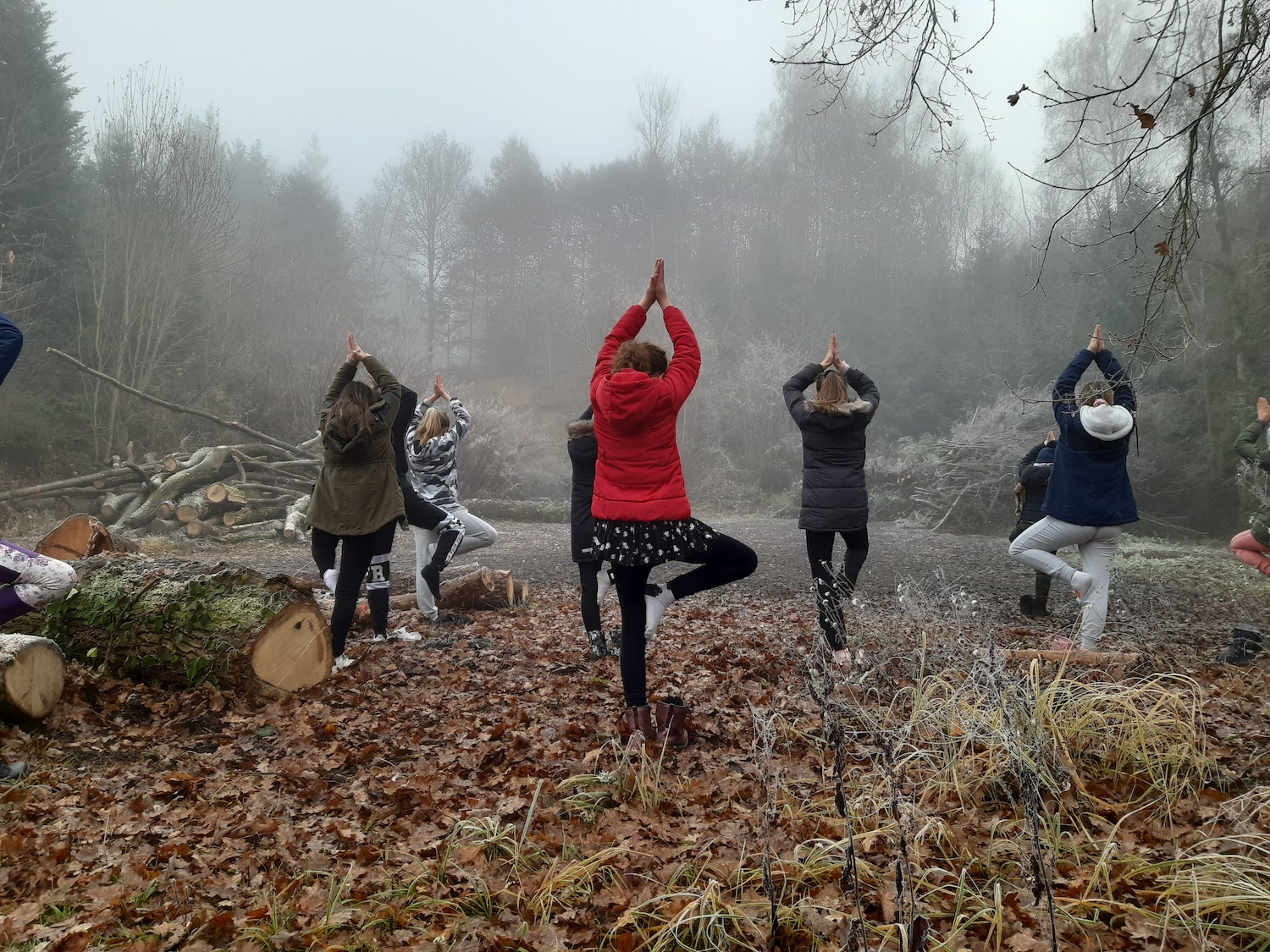 Um trotz der ganzen Corona-Umstände den Sportunterricht etwas unterhaltsamer zu gestalten, machten die Schülerinnen der 5.- und 7. Klasse im Mittelteil ihrer Wanderung eine kurze Pause an einer Waldlichtung. Diese nutzten sie, um ein paar kleine Yogaübungen zu absolvieren. Yoga verbessert nicht nur die muskuläre Leistungskraft, es beruhigt die Atmung, baut Spannungen ab und verbessert die Koordinationsfähigkeit sowie die Konzentration. Aber das Wichtigste ist: Yoga macht Spaß!