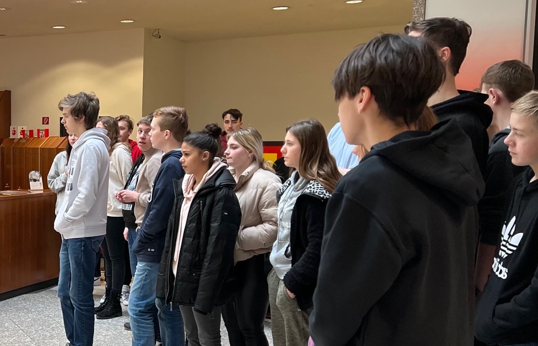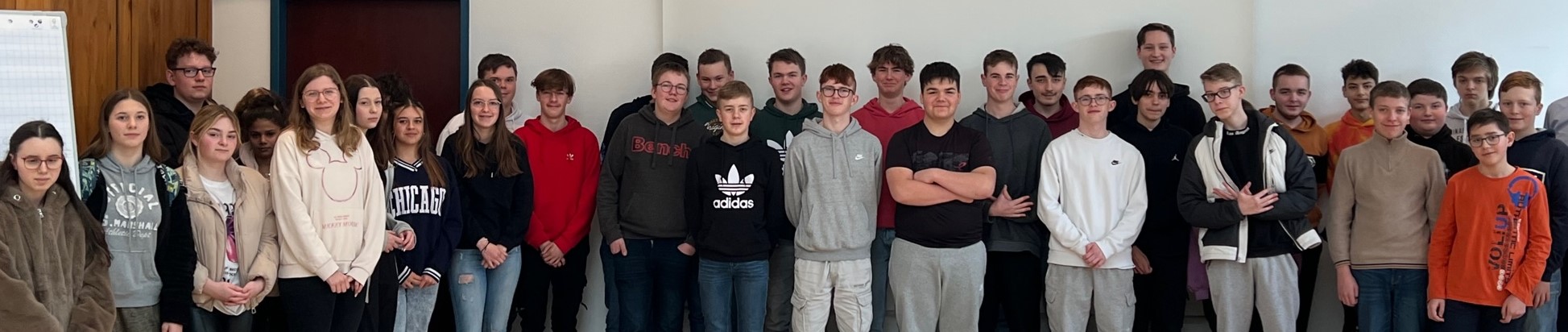Die Schülerinnen und Schüler der Klassen 8a und 9a besuchten im Rahmen einer Betriebserkundung die Sparkasse Niederbayern-Mitte in deren Hauptsitz in Dingolfing. Nach der Vorstellung der Firmenhistorie folgte auch schon die Besichtigung des Schalterbereichs. Hier konnte nachvollzogen werden, welche Möglichkeiten Kunden haben, selbstständig Geld abzuheben bzw. einzuzahlen. Eine Etage tiefer gelangten die Schulklassen in den Bereich des zentralen Tresors und der Schließfachanlage. Beides konnten die Lernenden mit ihren Klassenlehrern Jürgen Wolf und Roland Erndl genau besichtigen. Im Anschluss bekamen die Schülerinnen und Schüler weitere Informationen rund um das erste eigene Geld und erhielten einen Kurzüberblick zum Thema Immobilien. Nach einer Stärkung in den Räumen der Sparkasse Dingolfing bedankten sich die Schülerinnen und Schüler der Klassen 8a und 9a herzlich für den interessanten Tag bei der Sparkasse Dingolfing. Mit dem Bus ging es abschließend zurück nach Eichendorf.