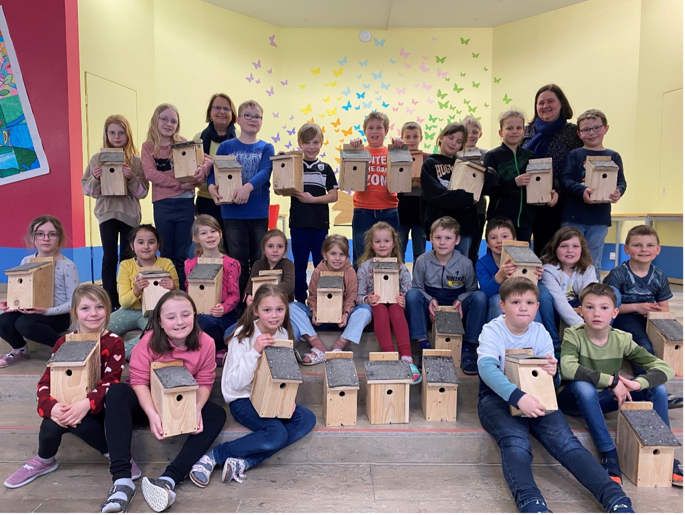 Jedes Kind der AG Umwelt durfte unter der Leitung von Frau Bartlsperger einen eigenen Nistkasten bauen. Das Material wurde von Frau Gerstl organisiert, welche die Kinder beim Bauen der Nistkästen tatkräftig unterstützte. Die Nistkästen werden von den Kindern im Garten der Eltern angebracht. Somit tragen alle Schülerinnen und Schüler der AG Umwelt aktiv zum Vogelschutz bei.